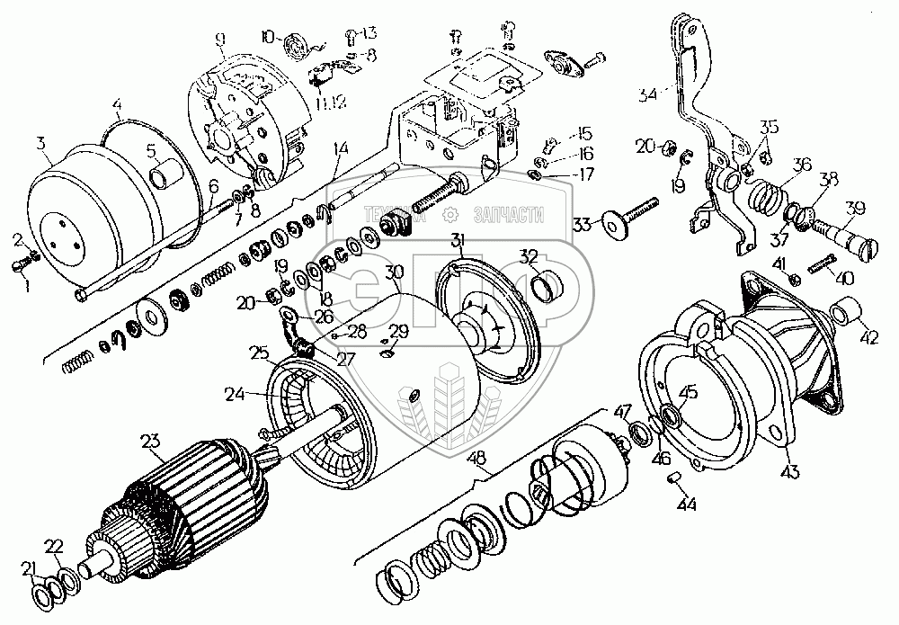 Каталог запасных частей к технике: ЧТЗ Т-10.02. Стартер пускового двигателя