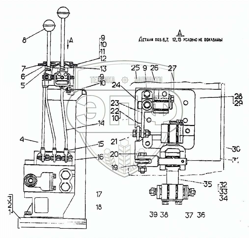 Каталог запасных частей к технике: ЧТЗ Т-10.02. Управление гидрораспределителем