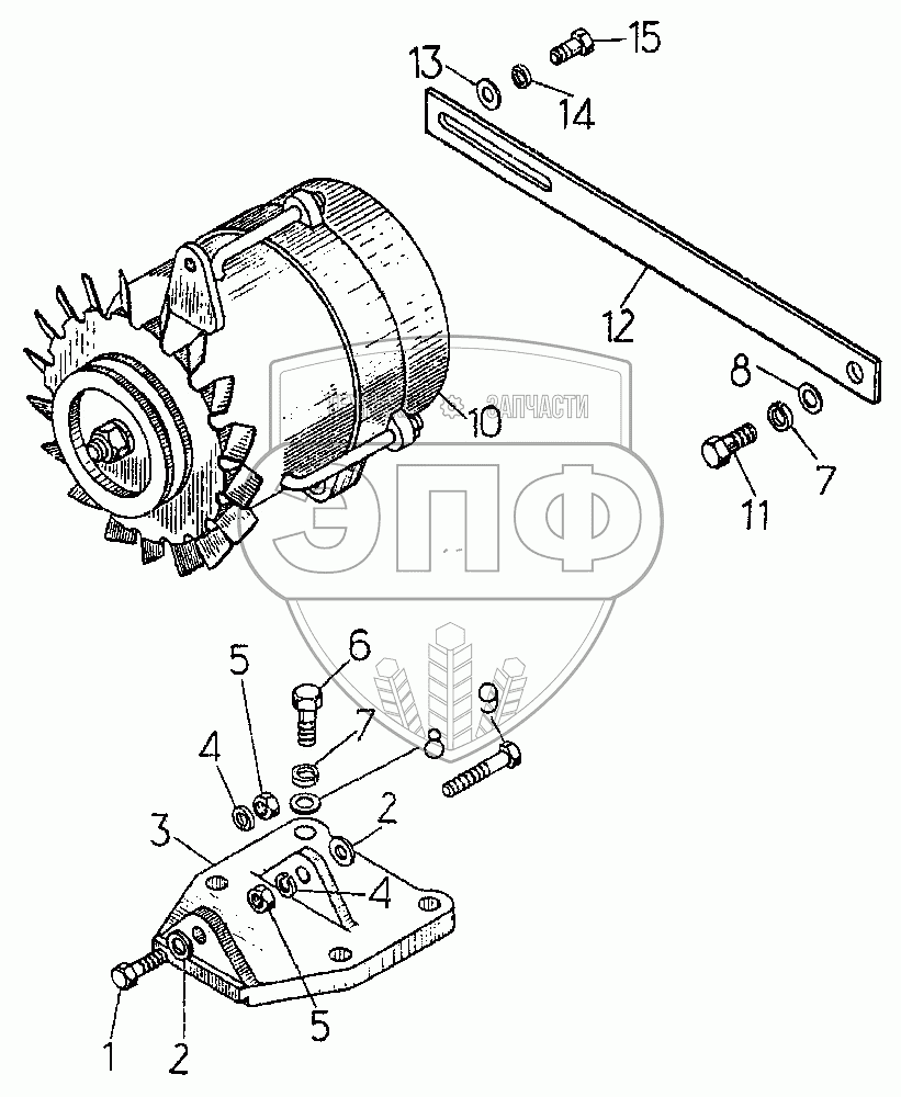 Каталог запасных частей к технике: ЧТЗ Т-10.02. Установка генератора