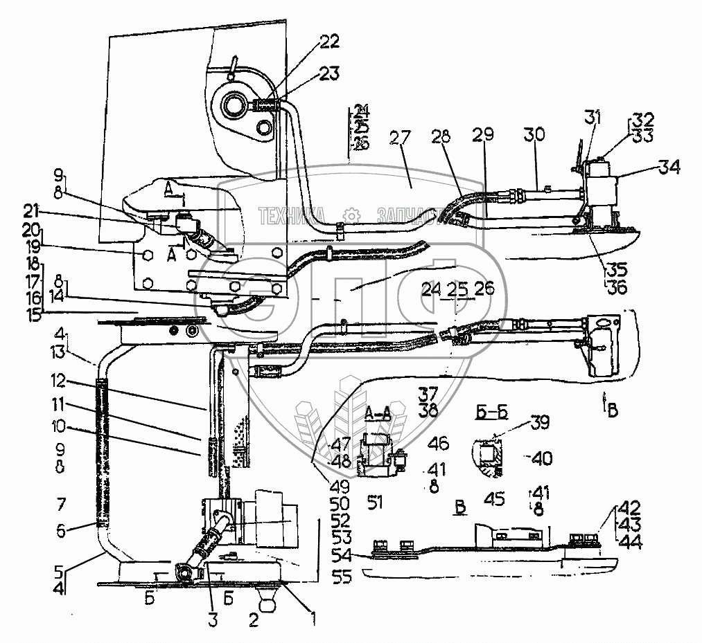 Каталог запасных частей к технике: ЧТЗ Т-10.02. Установка гидросистемы