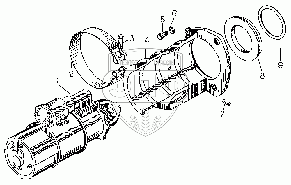 Каталог запасных частей к технике: ЧТЗ Т-10.02. Установка стартера