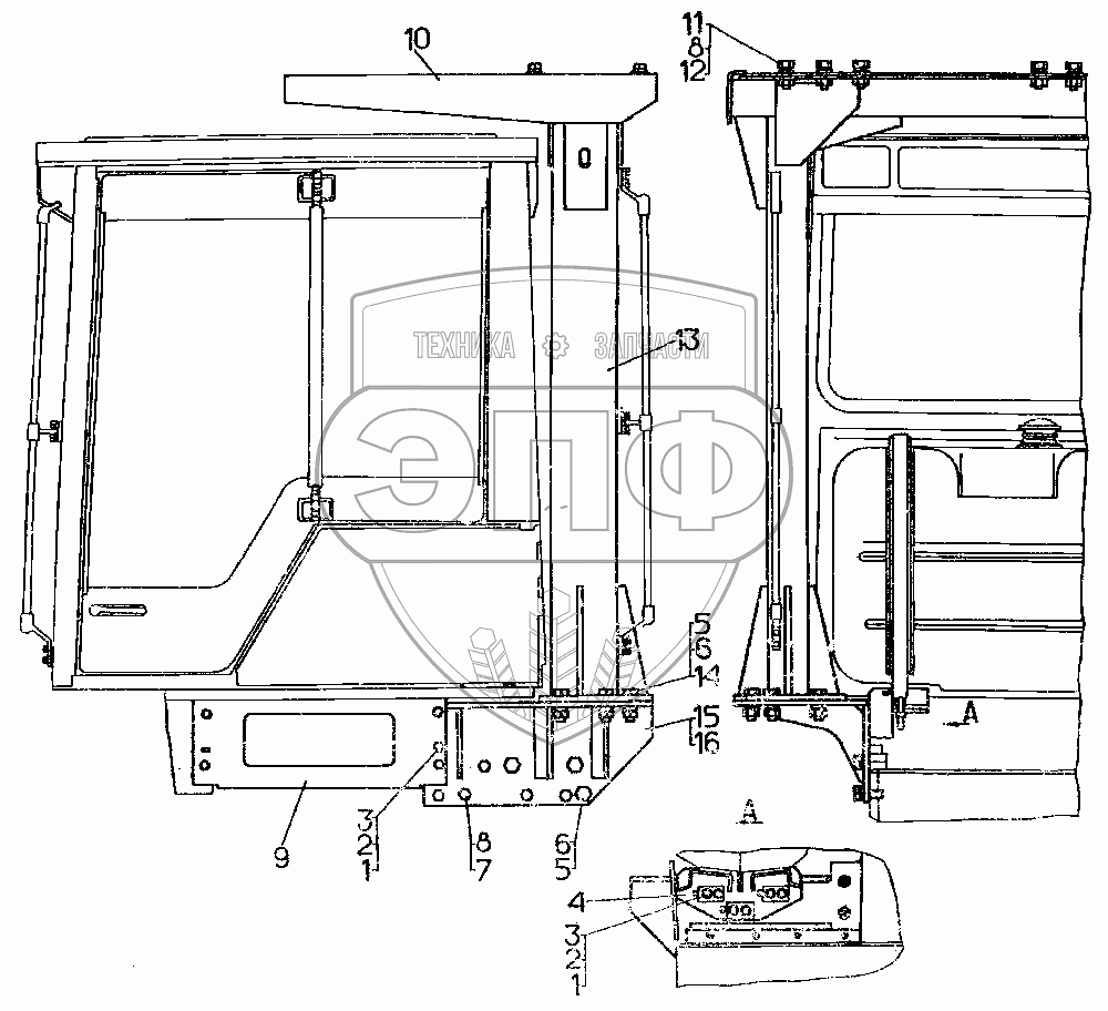 Каталог запасных частей к технике: ЧТЗ Т-10.02. Установка устройства защиты оператора