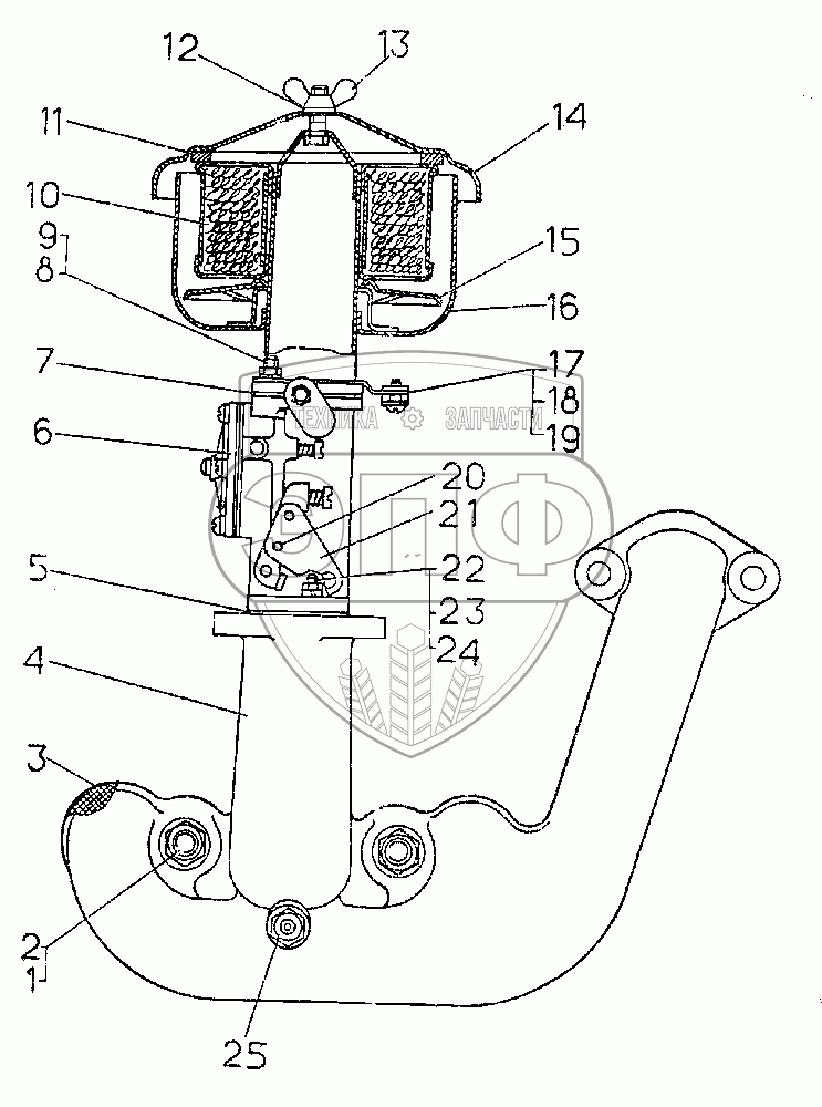 Каталог запасных частей к технике: ЧТЗ Т-10.02. Установка воздухоочистителя пускового двигателя