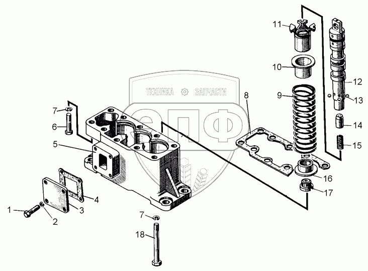 Каталог запасных частей к технике: ЧТЗ Т-10М. Гидрораспределитель. Крышка нижняя