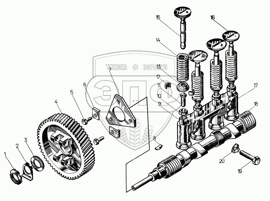 Каталог запасных частей к технике: ЧТЗ Т-10М. Механизм газораспределения пускового двигателя
