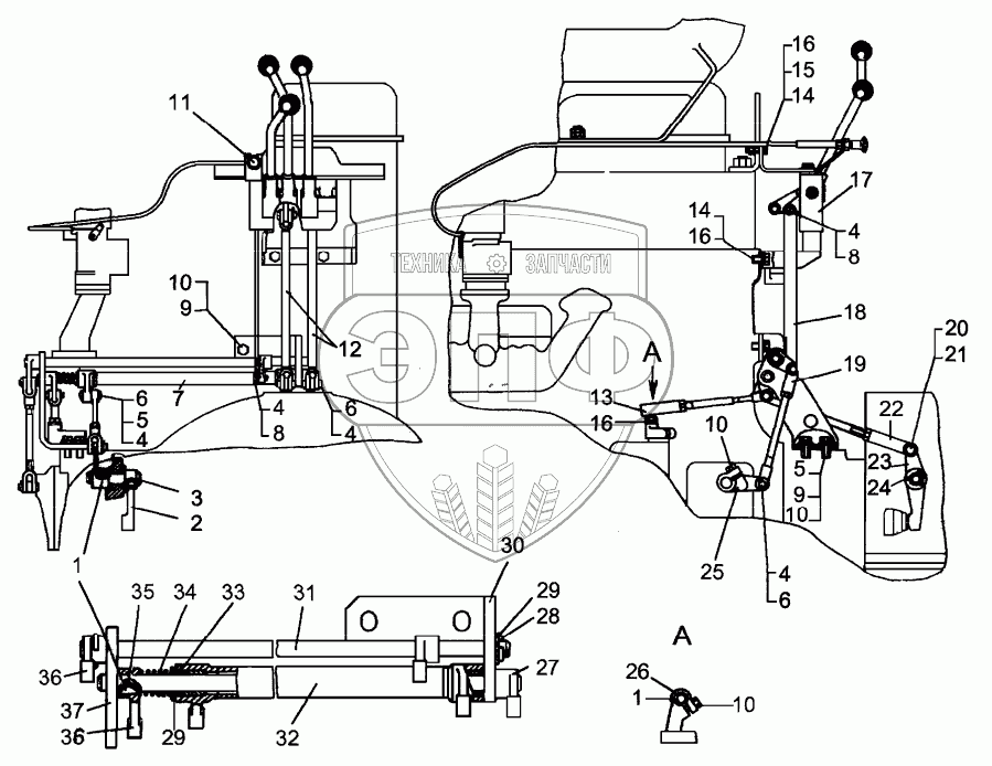 Каталог запасных частей к технике: ЧТЗ Т-10М. Управление дизелем (с пусковым двигателем)