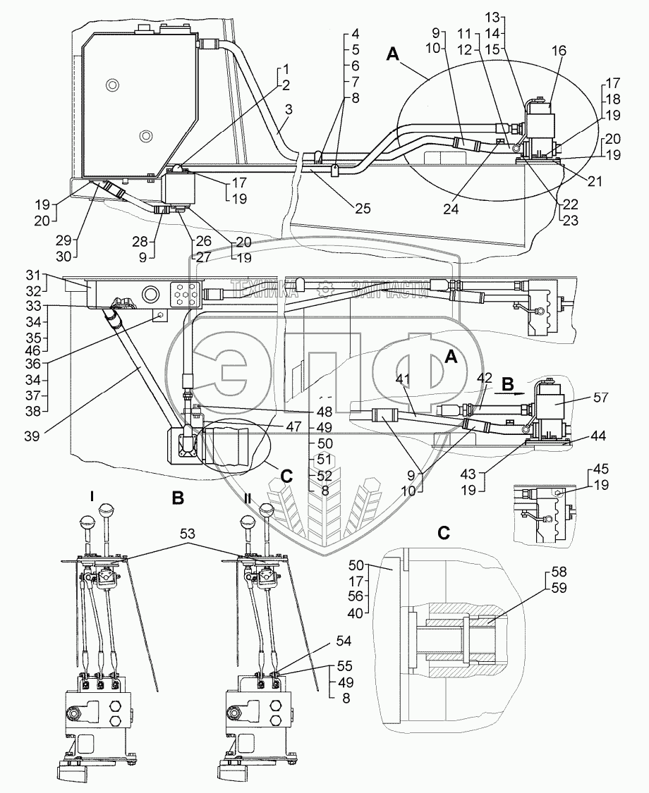 Каталог запасных частей к технике: ЧТЗ Т-10М. Установка гидросистемы