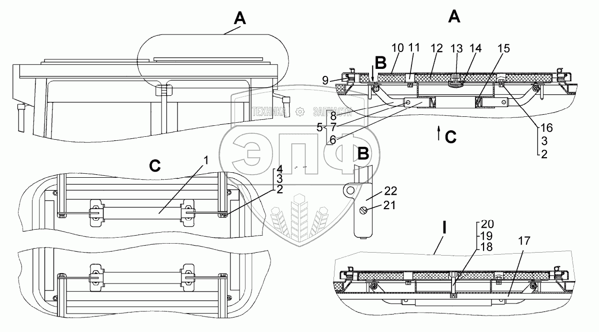 Каталог запасных частей к технике: ЧТЗ Т-10М. Установка люка