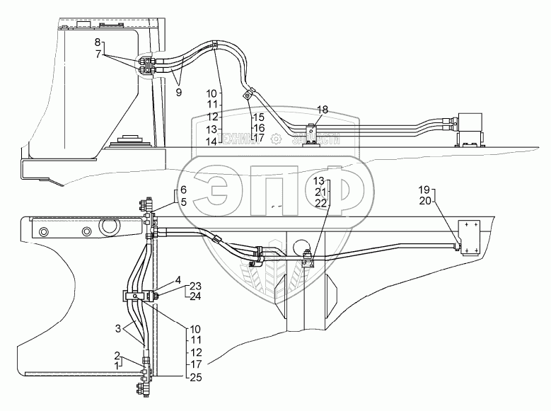 Каталог запасных частей к технике: ЧТЗ Т-10М. Установка передних трубопроводов