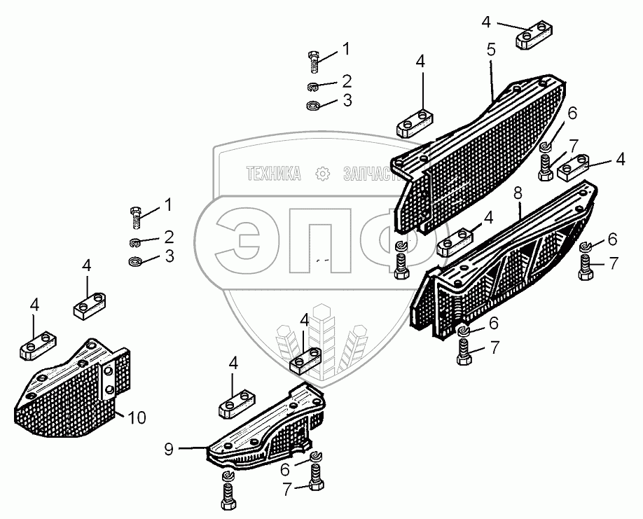 Каталог запасных частей к технике: ЧТЗ Т-10М. Установка щитков от схода гусениц