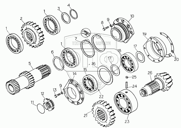 Каталог запасных частей к технике: ЧТЗ Т-10М. Вал-шестерня с деталями