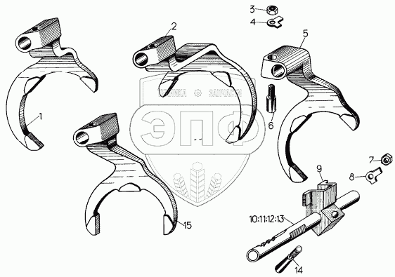 Каталог запасных частей к технике: ЧТЗ Т-10М. Валики, вилки переключения передач