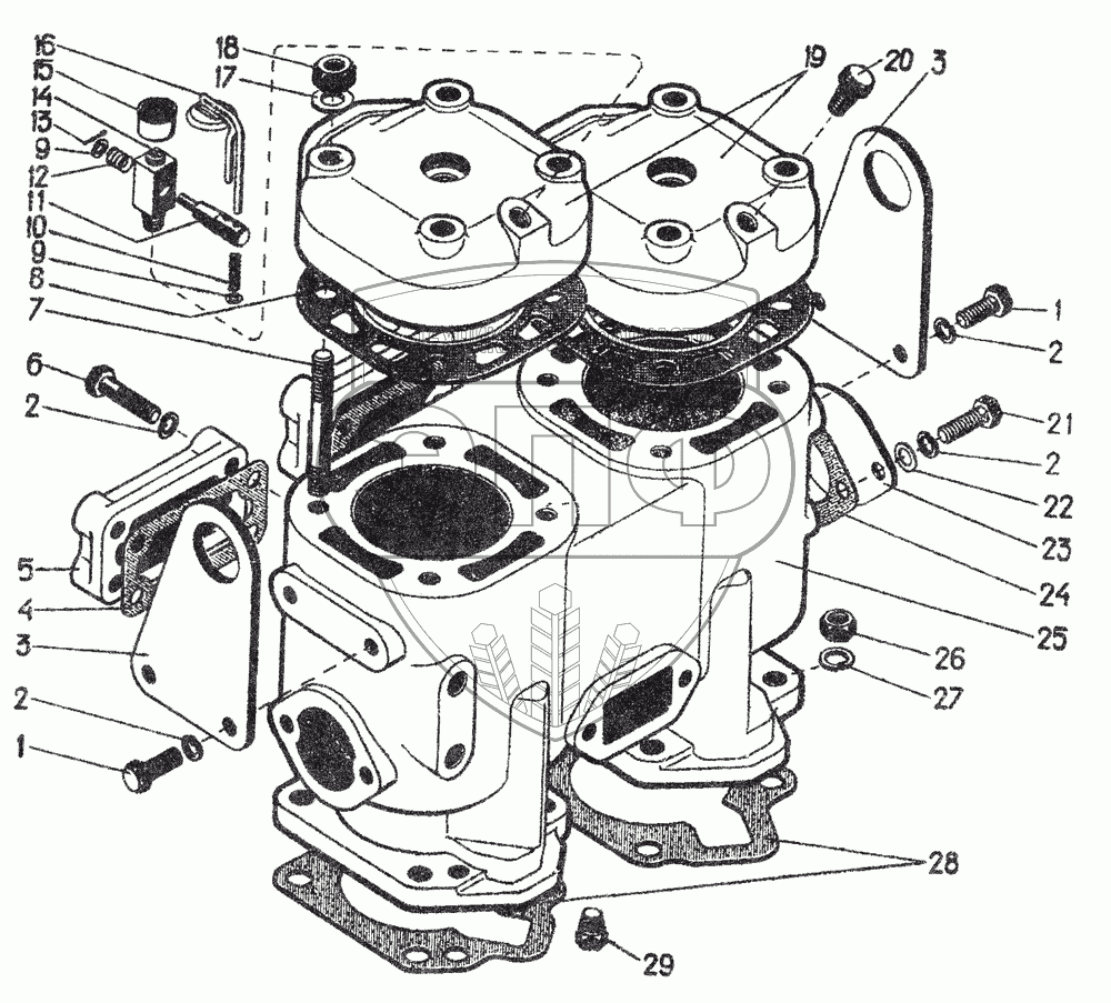 Каталог запасных частей к технике: ЧТЗ Т-130. Головка и блок цилиндров