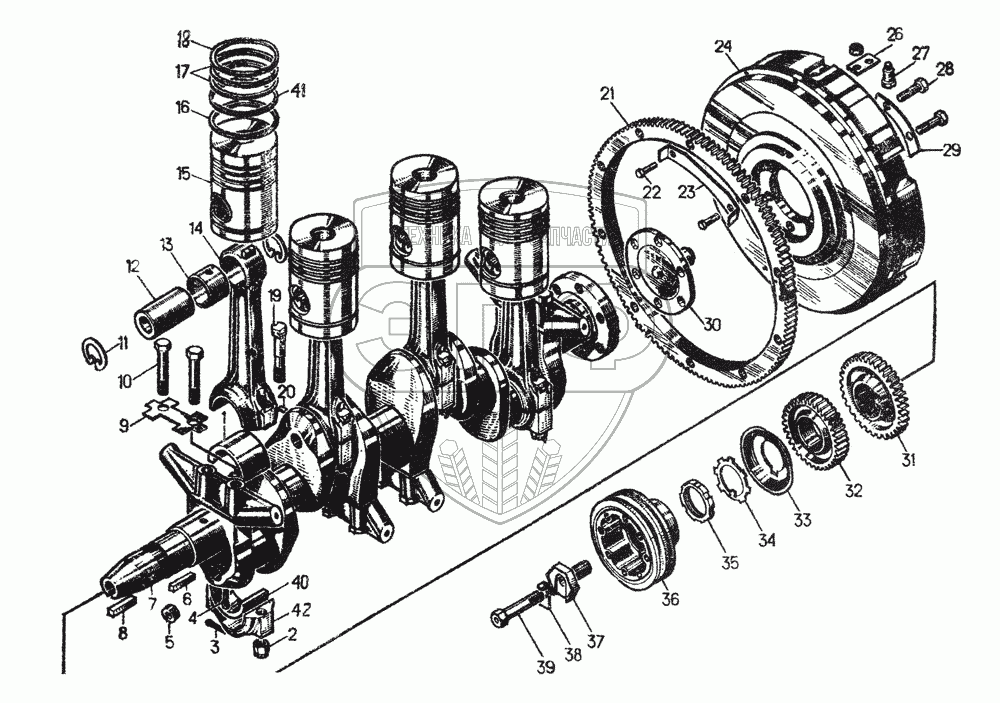 Каталог запасных частей к технике: ЧТЗ Т-130. Кривошипно-шатунный механизм 51-03-1СП