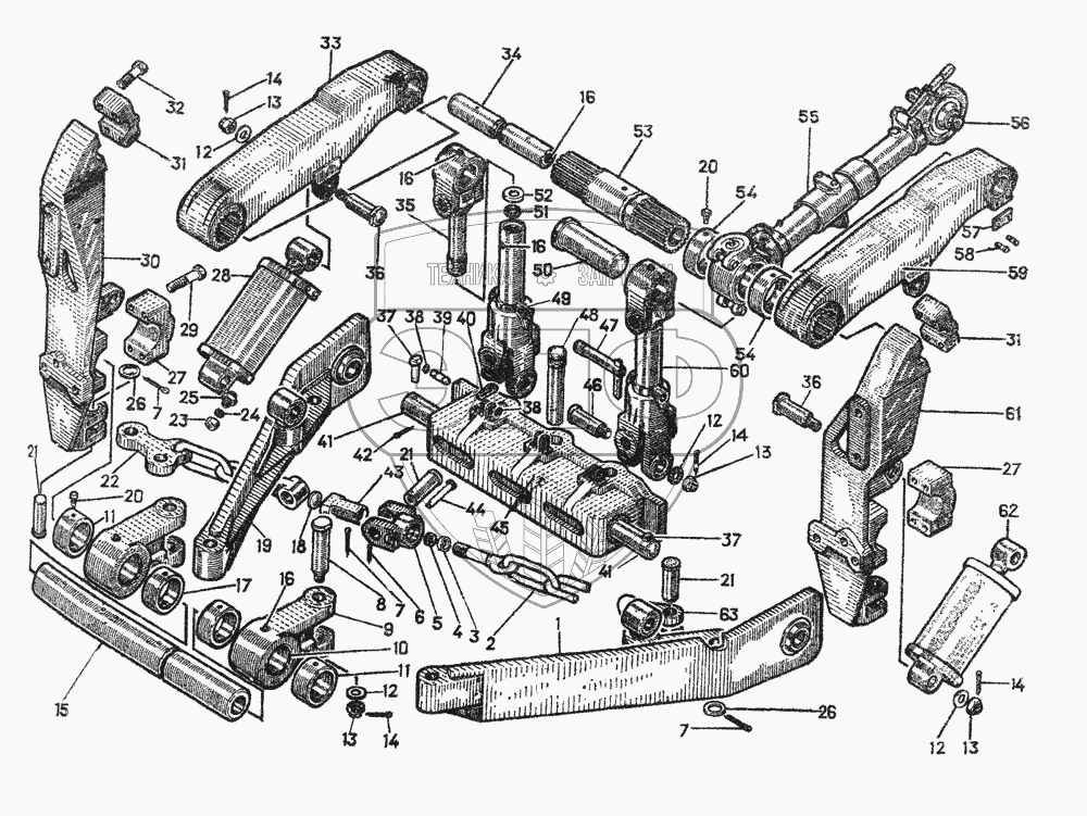 Каталог запасных частей к технике: ЧТЗ Т-130. Механизм навески комплект 266СП