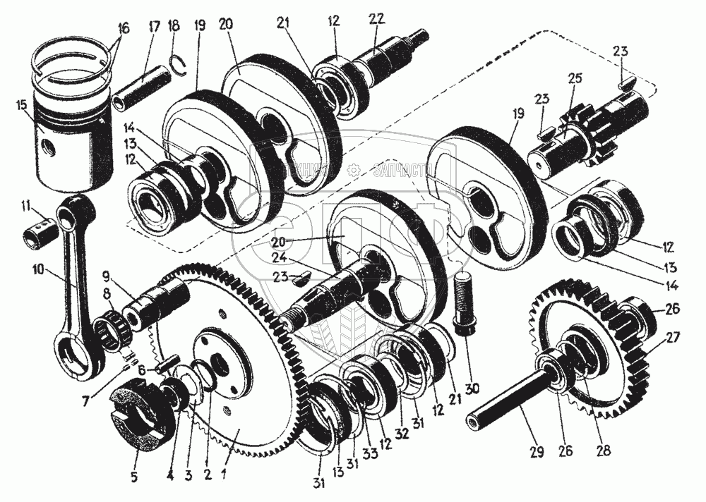 Каталог запасных частей к технике: ЧТЗ Т-130. Поршень, кривошипы