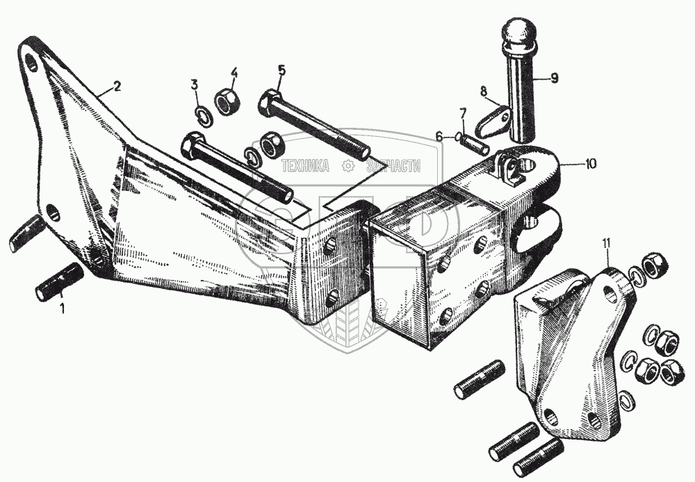 Каталог запасных частей к технике: ЧТЗ Т-130. Прицепное устройство 18-51-сб3