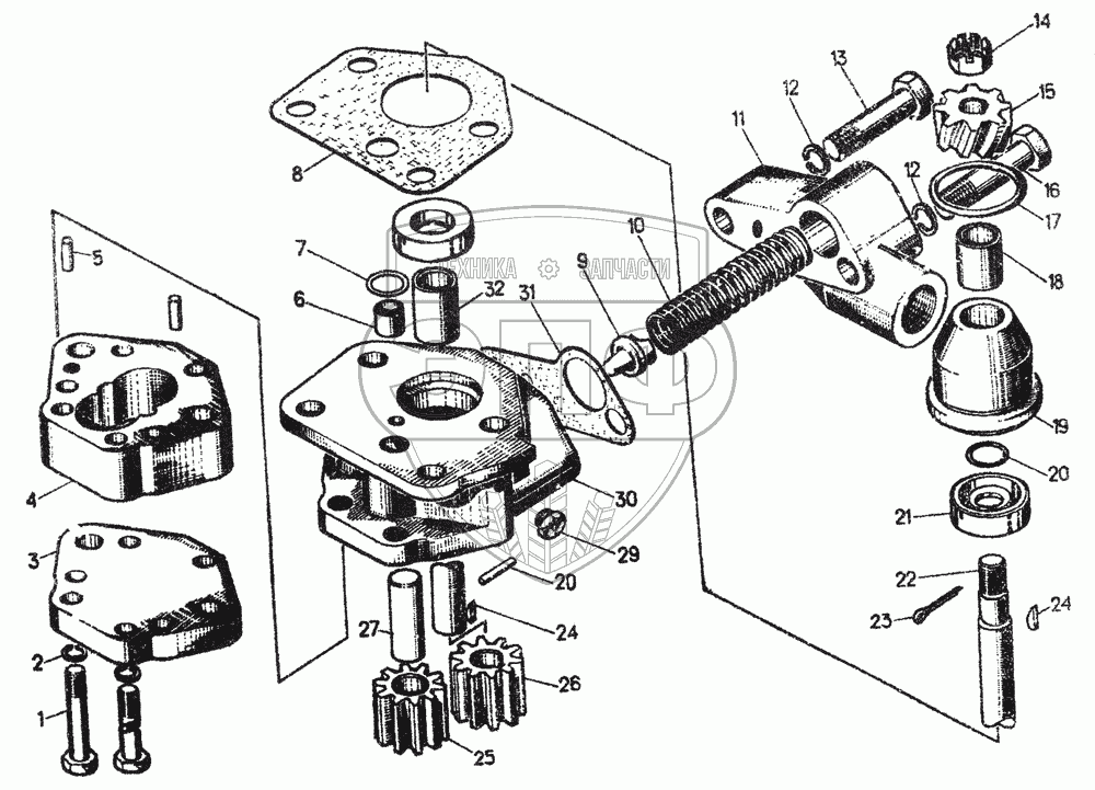 Каталог запасных частей к технике: ЧТЗ Т-130. Топливоподкачивающая помпа, комплект 14-71-3СП