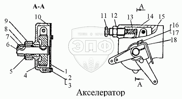 Каталог запасных частей к технике: ЧТЗ Т-170. Акселератор
