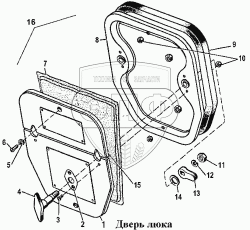 Каталог запасных частей к технике: ЧТЗ Т-170. Дверь люка