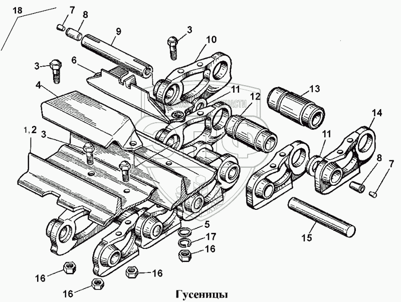 | 18 | 24-22-1-СП | Гусеница трактора с шириной башмака 500 мм | Нет на складе | |