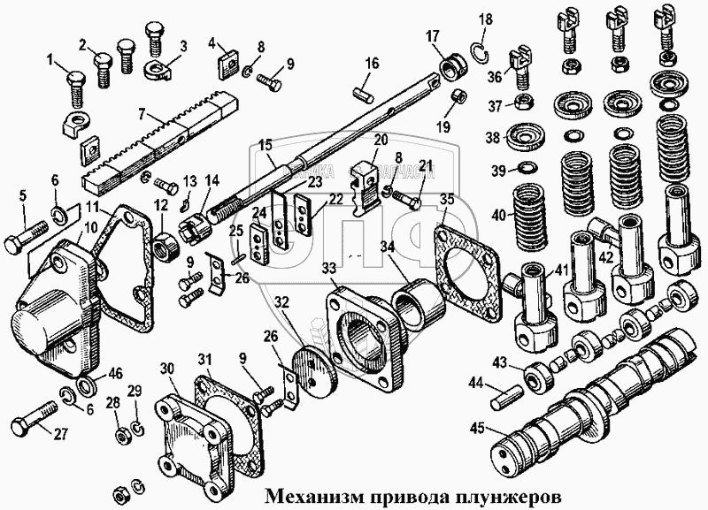 Каталог запасных частей к технике: ЧТЗ Т-170. Механизм привода плунжеров