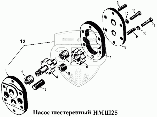 Каталог запасных частей к технике: ЧТЗ Т-170. Насос шестеренный НМШ25