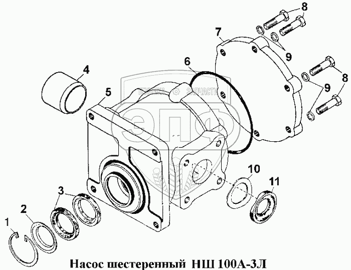 Каталог запасных частей к технике: ЧТЗ Т-170. Насос шестеренный НШ100А-ЗЛ