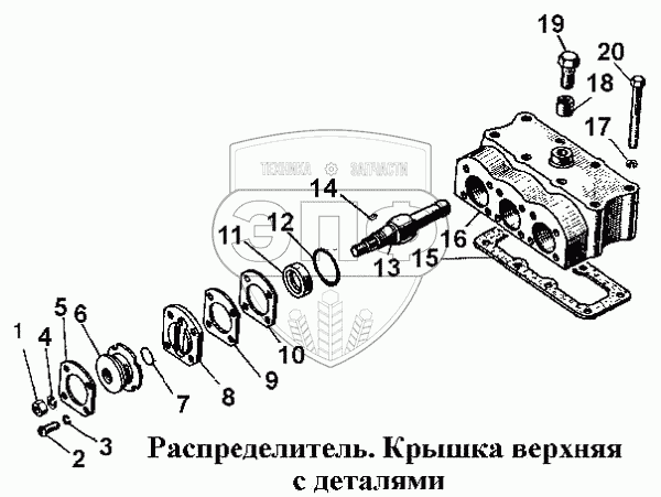 Каталог запасных частей к технике: ЧТЗ Т-170. Распределитель. Крышка верхняя с деталями