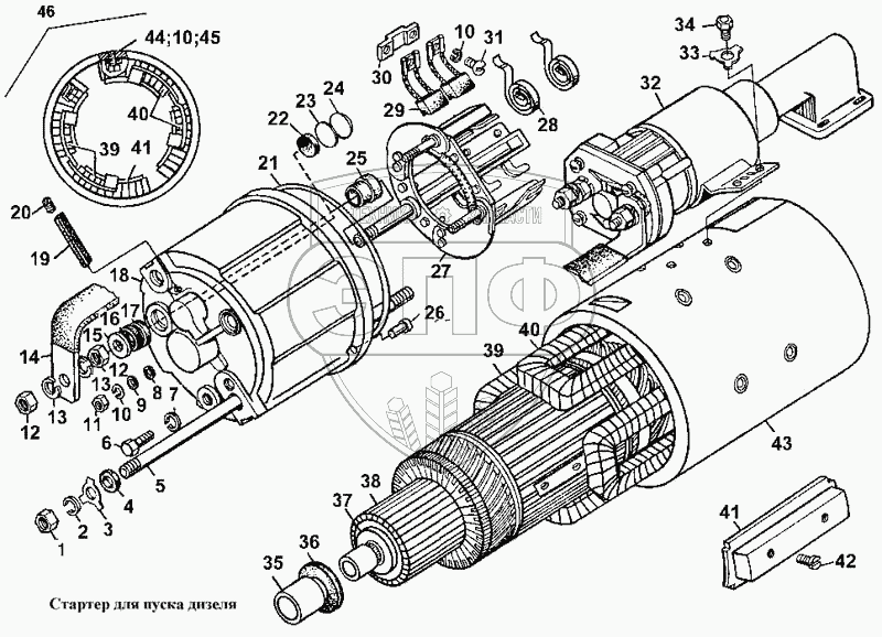 Каталог запасных частей к технике: ЧТЗ Т-170. Стартер для пуска дизеля