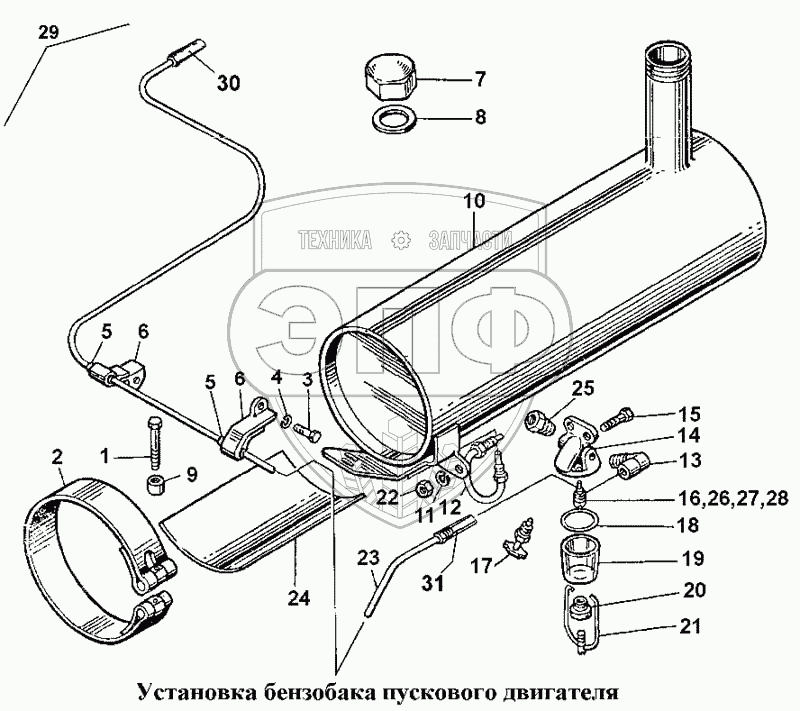 Каталог запасных частей к технике: ЧТЗ Т-170. Установка бензобака пускового двигателя