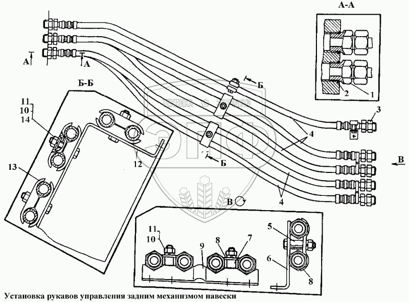 Каталог запасных частей к технике: ЧТЗ Т-170. Установка рукавов управления задним механизмом навески