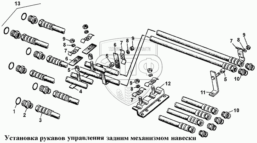 Каталог запасных частей к технике: ЧТЗ Т-170. Установка рукавов управления задним механизмом навески