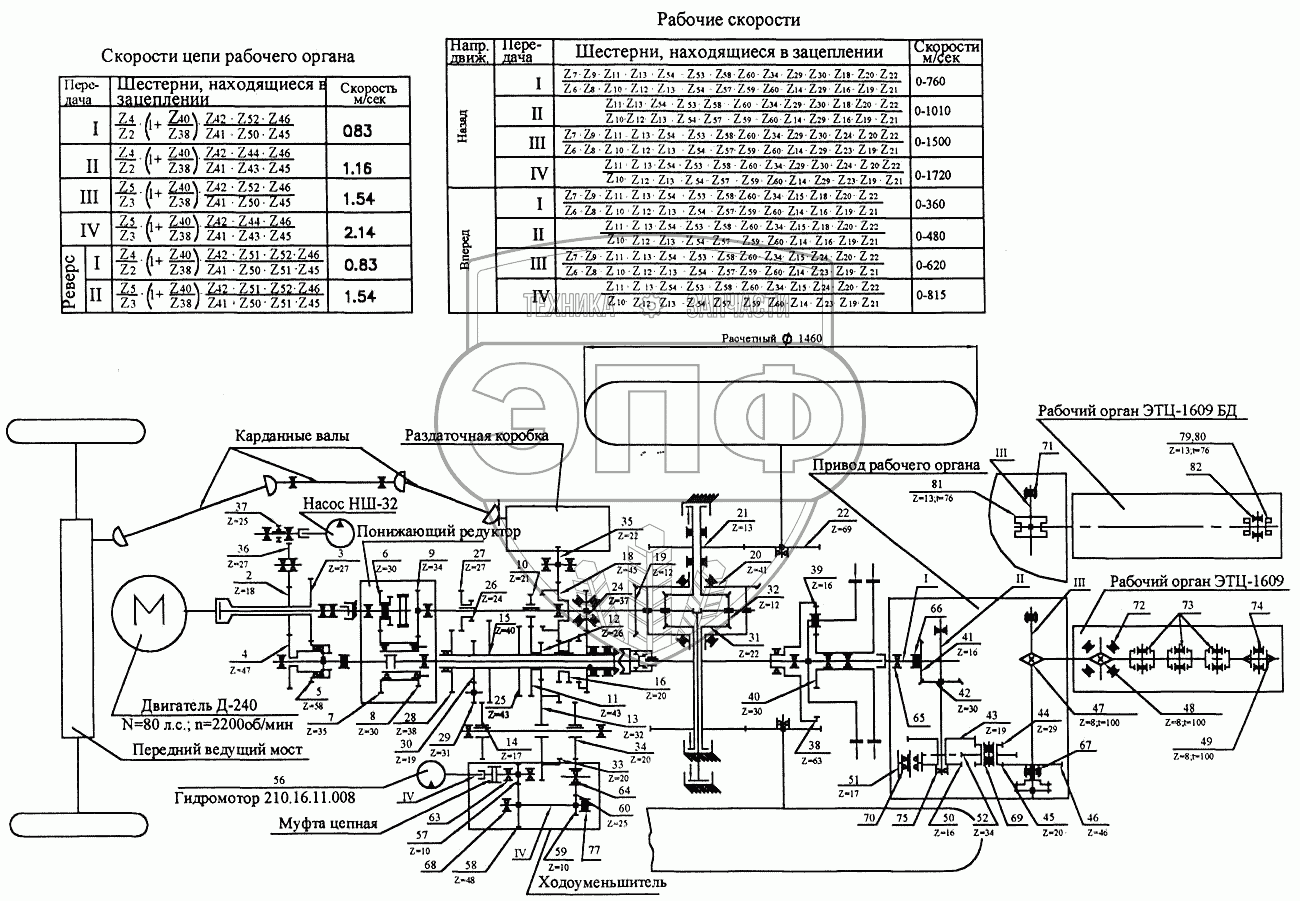 Каталог запасных частей к технике: ДЭЗ ЭТЦ-1609. Схема кинематическая