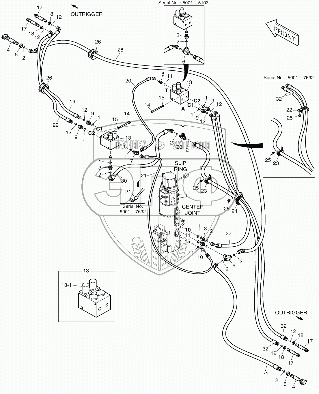 Каталог запасных частей к технике: Doosan DX140W. 4 OUTRIGGER PIPING - INDE