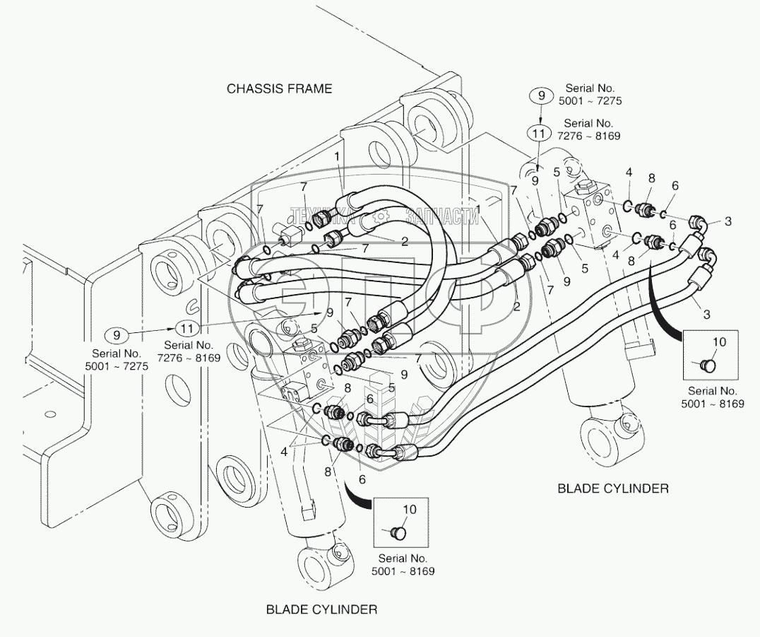 Каталог запасных частей к технике: Doosan DX140W. BLADE PIPING - REAR DOZER ONLY