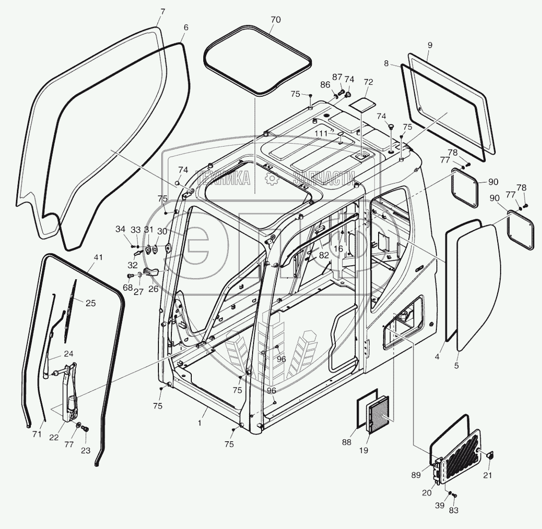 Каталог запасных частей к технике: Doosan DX140W. CABIN (1) - ROPS