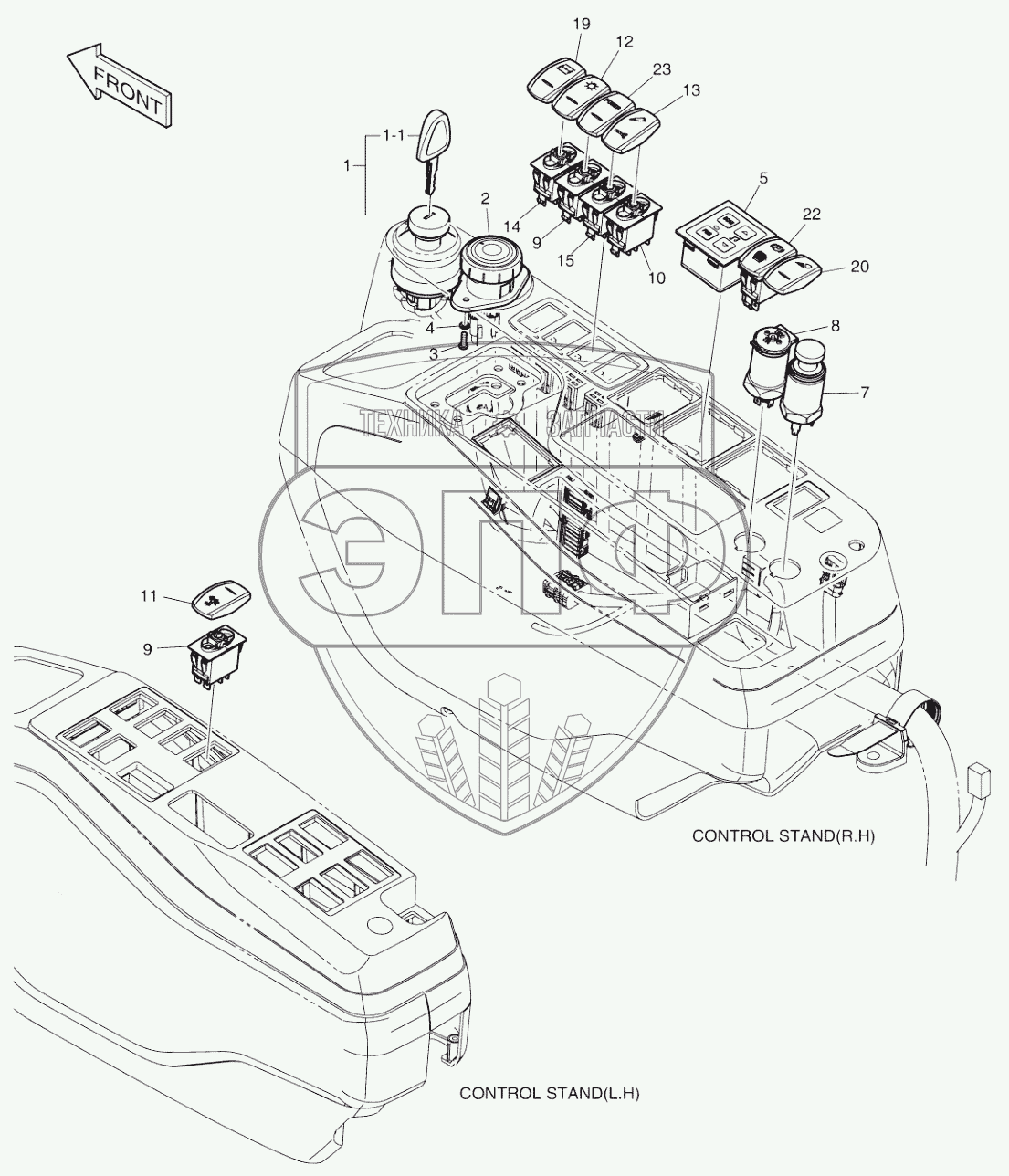 Каталог запасных частей к технике: Doosan DX140W. ELECTRIC PARTS - CONTROL STAND ROPS