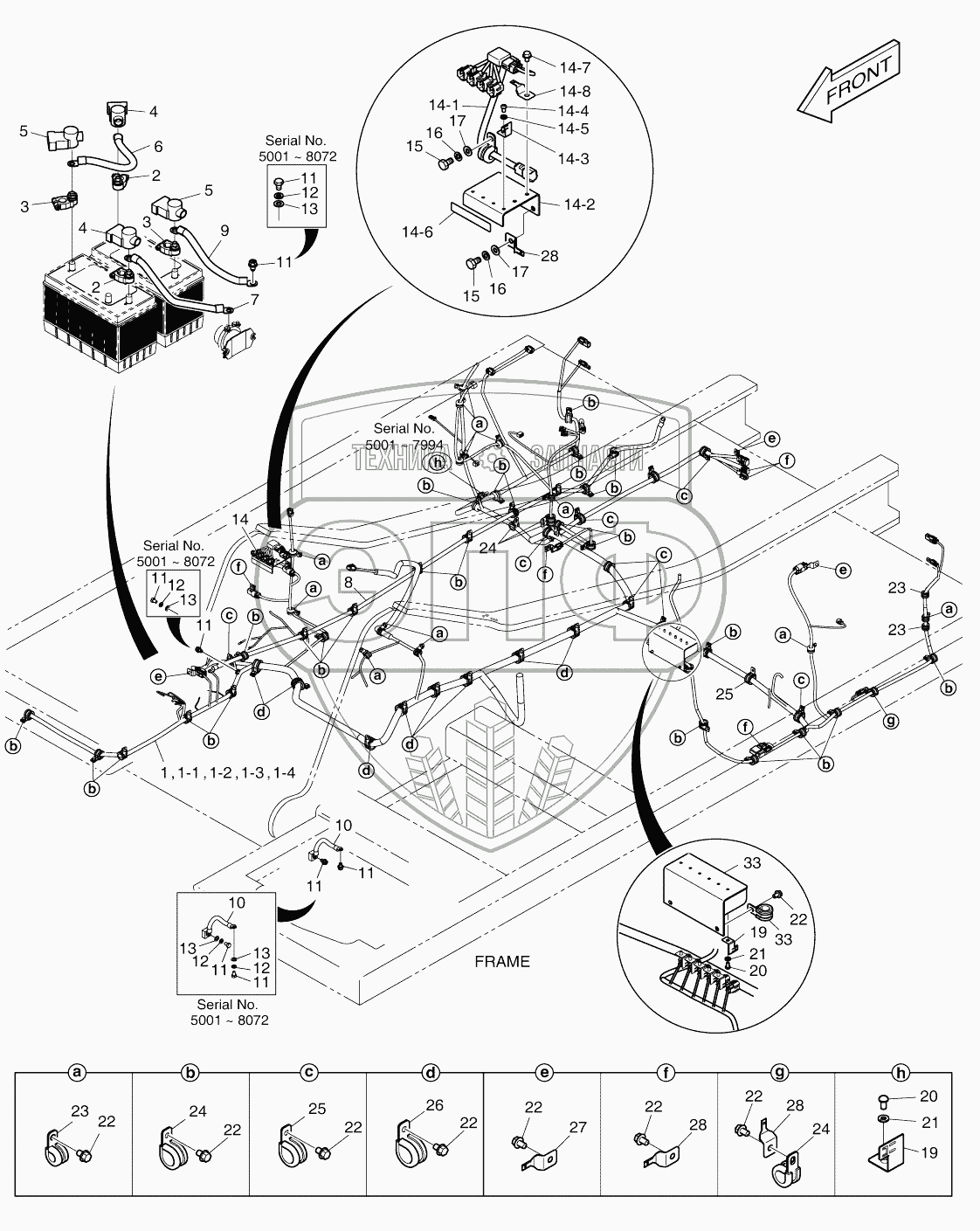 Каталог запасных частей к технике: Doosan DX140W. ELECTRIC PARTS - WIRING