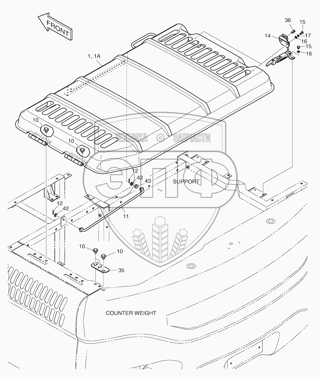 Каталог запасных частей к технике: Doosan DX140W. ENGINE COVER