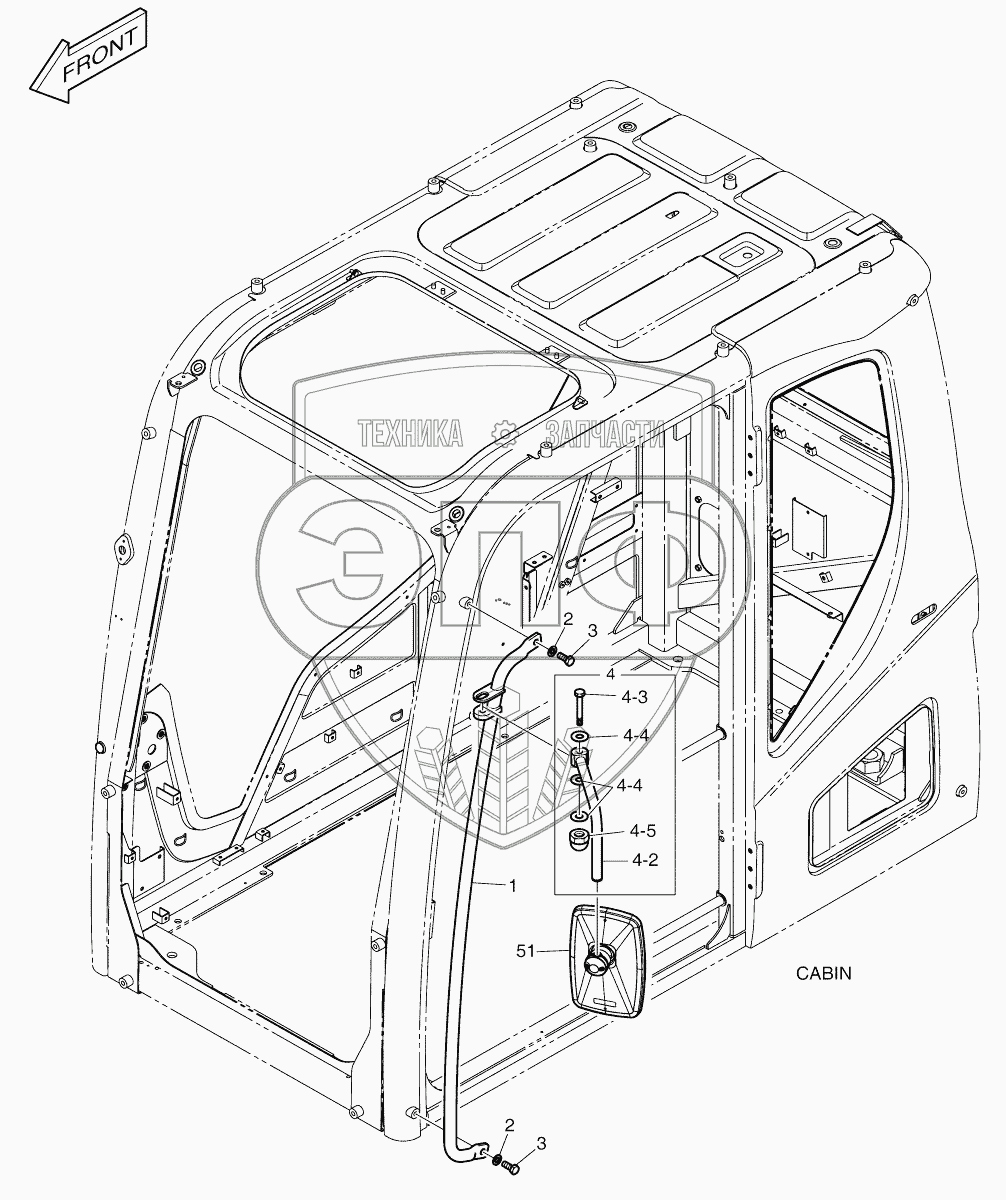 Каталог запасных частей к технике: Doosan DX140W. HANDLE - CABIN ROPS
