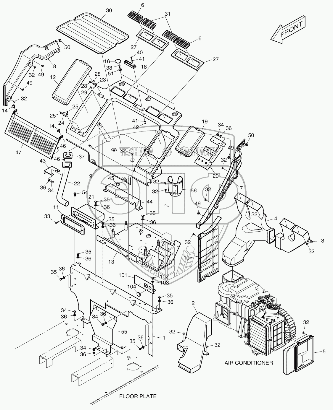 Каталог запасных частей к технике: Doosan DX140W. HEATER COVER - ROPS