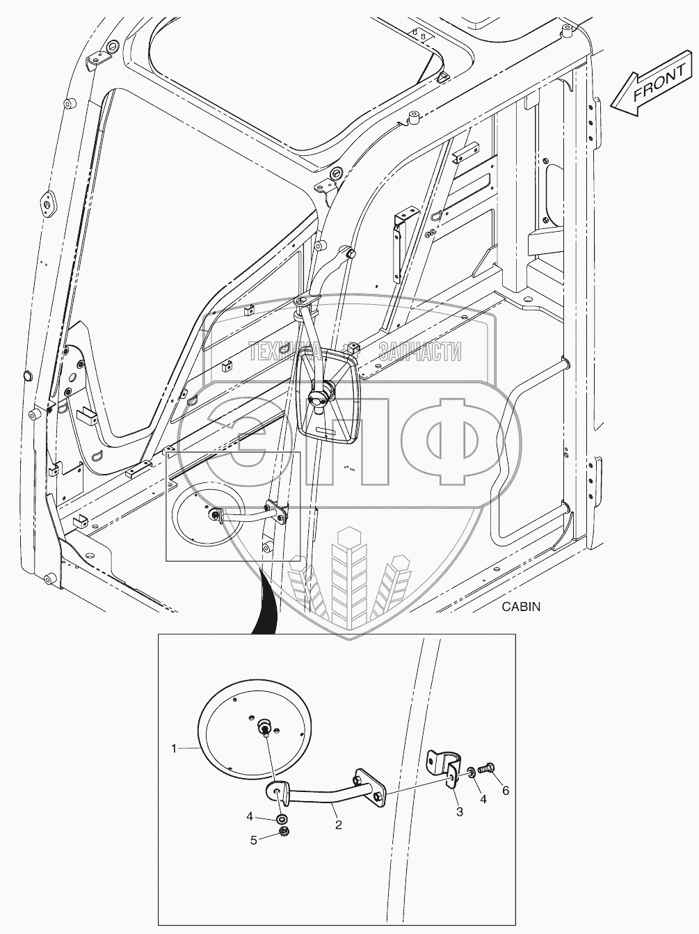 Каталог запасных частей к технике: Doosan DX140W. MIRROR - ADDITIONAL (CABIN)