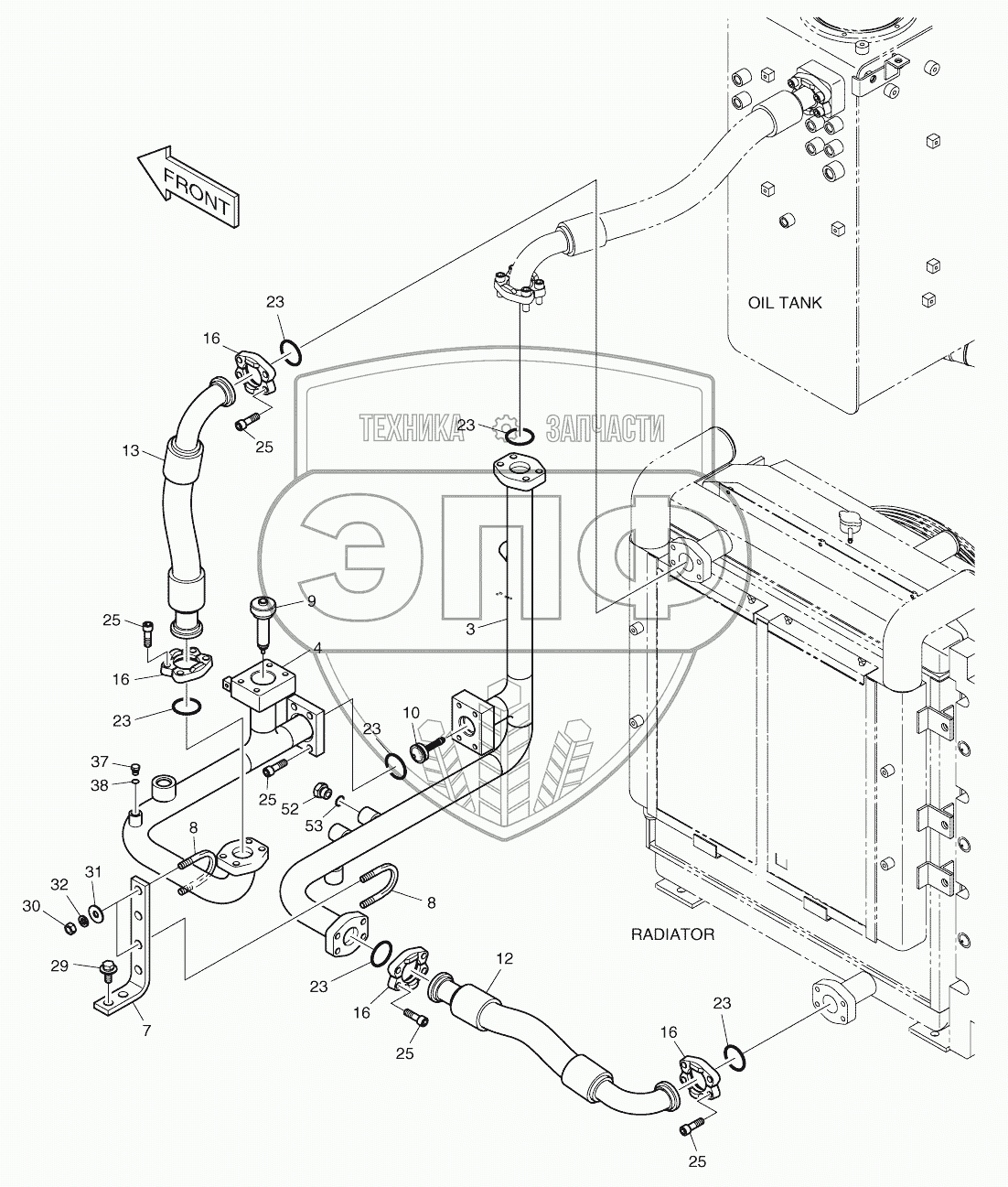 Каталог запасных частей к технике: Doosan DX140W. OIL COOLER PIPING (2)