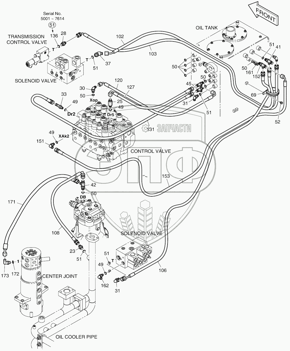 Каталог запасных частей к технике: Doosan DX140W. PILOT PIPING (3)