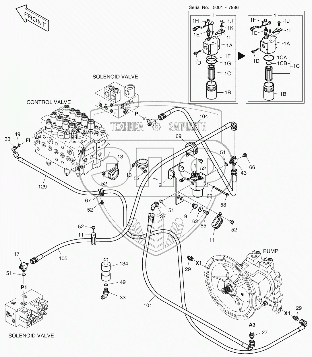 Каталог запасных частей к технике: Doosan DX140W. PILOT PIPING (4)