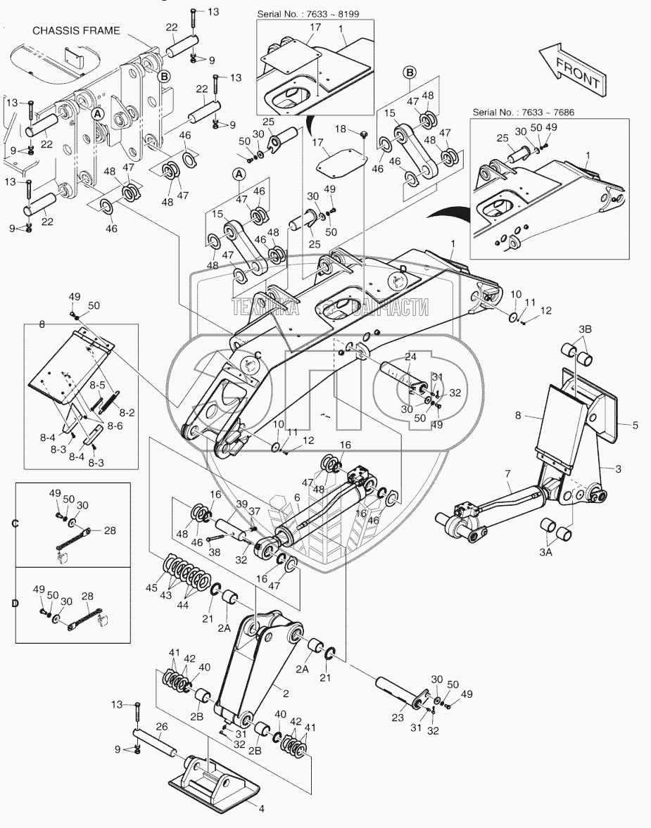 Каталог запасных частей к технике: Doosan DX140W. REAR OUTRIGGER (7633 ~)