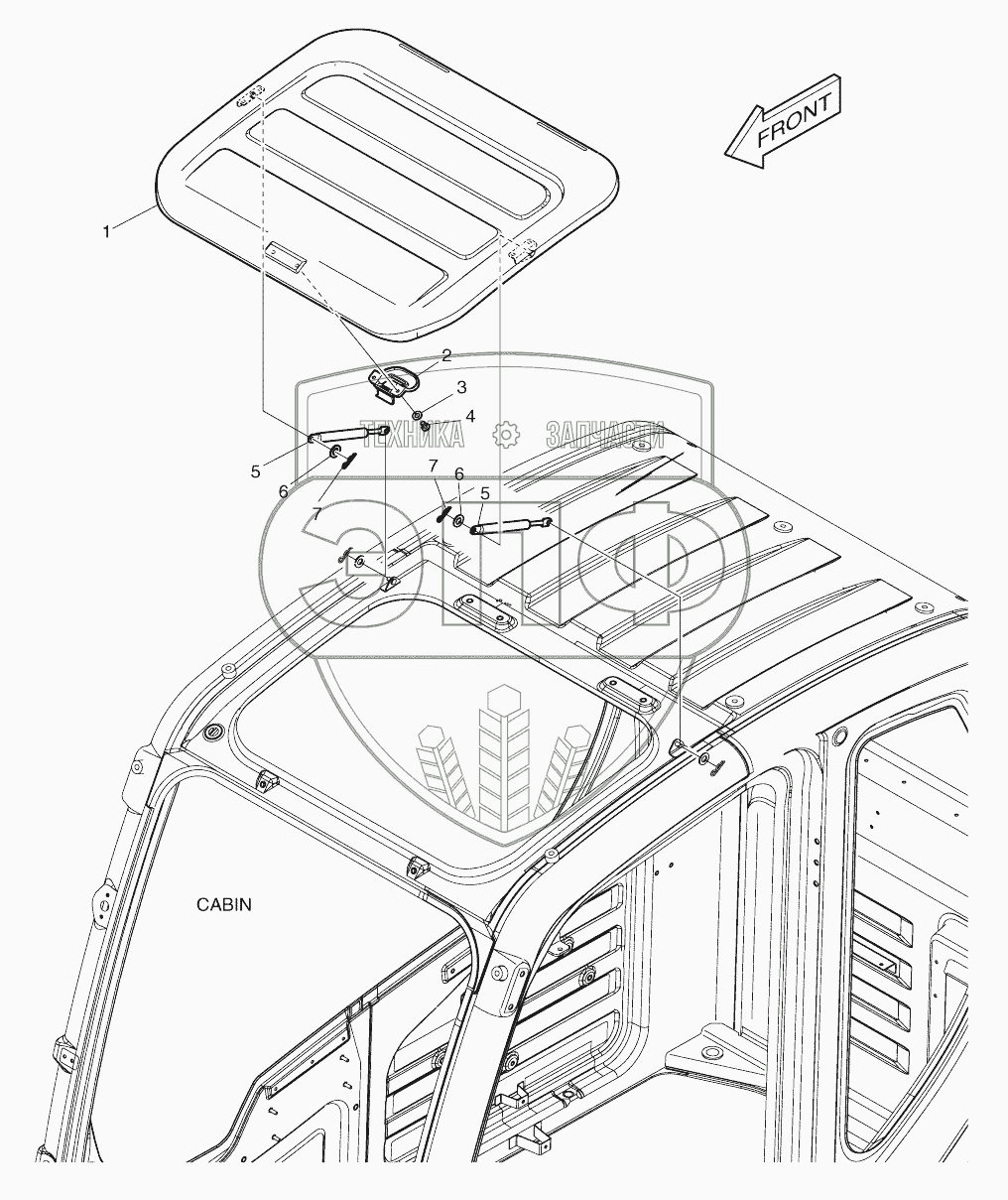 Каталог запасных частей к технике: Doosan DX140W. ROOF COVER - STEEL