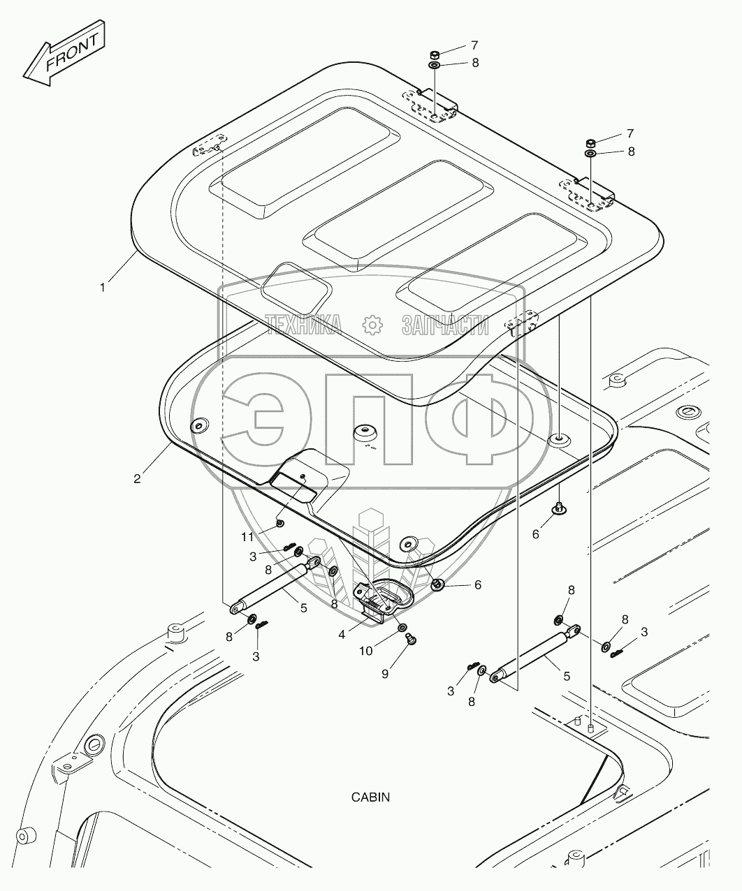 Каталог запасных частей к технике: Doosan DX140W. ROOF COVER - STEEL (ROPS)
