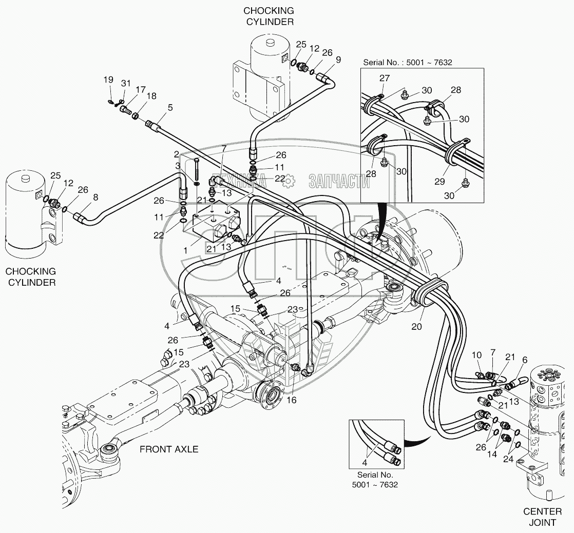 Каталог запасных частей к технике: Doosan DX140W. STEER AND CHOCKING PIPING